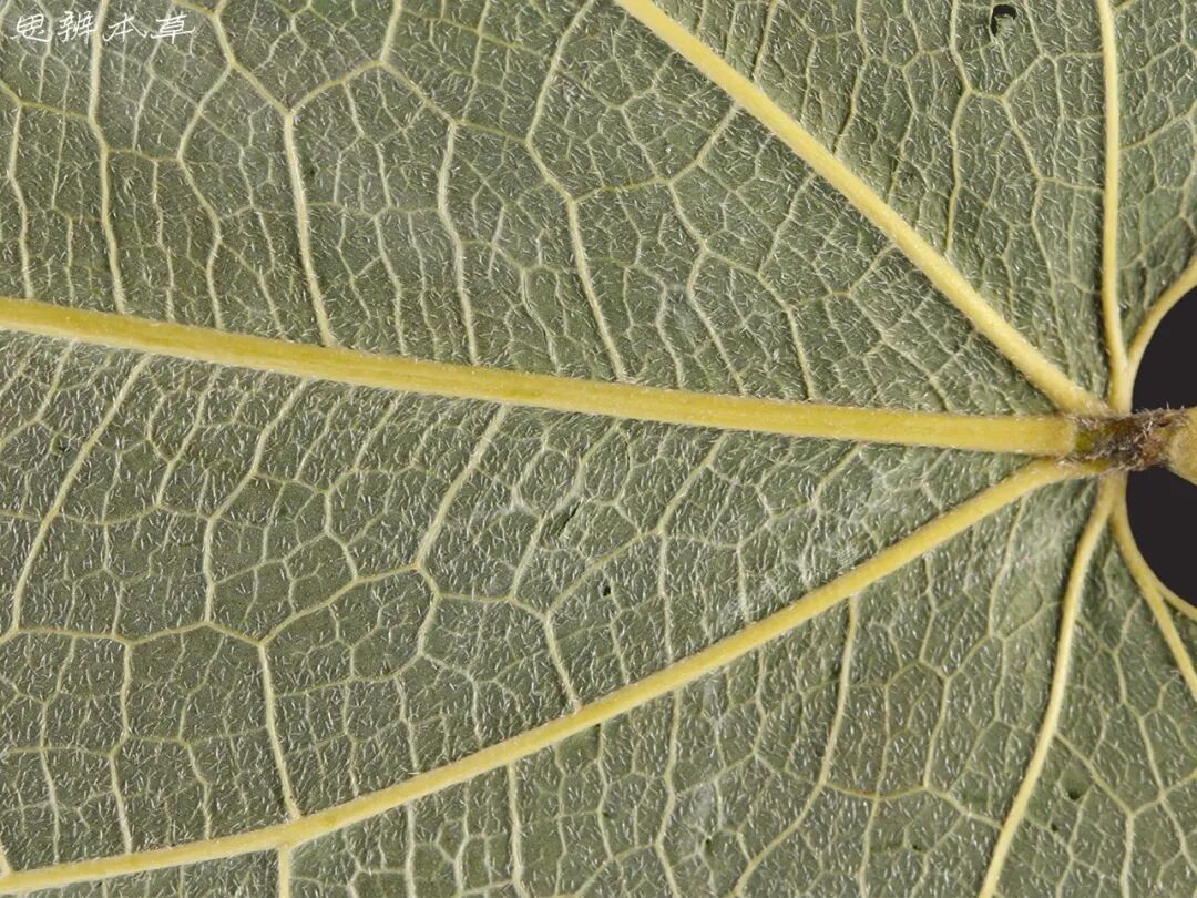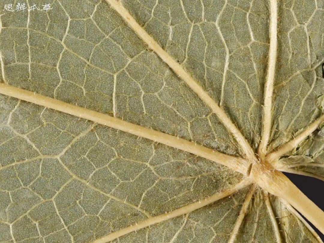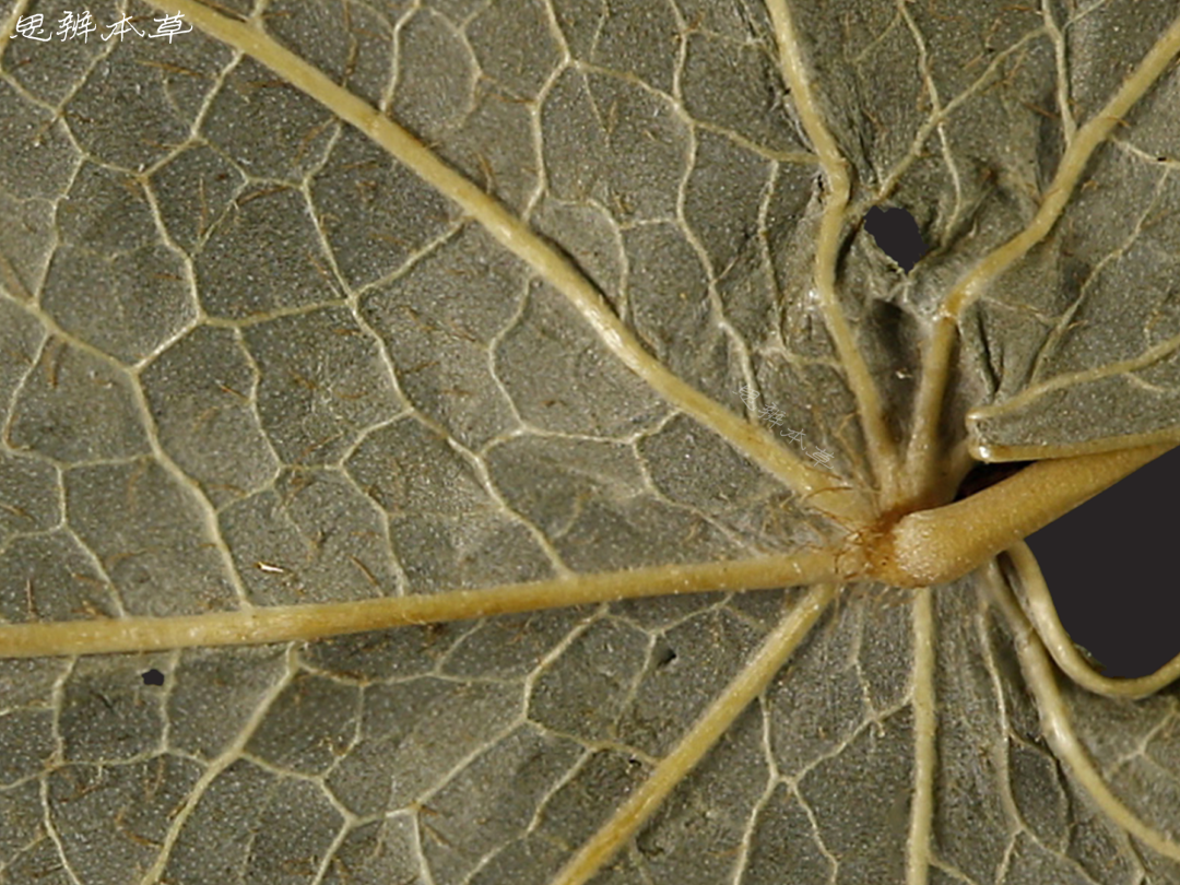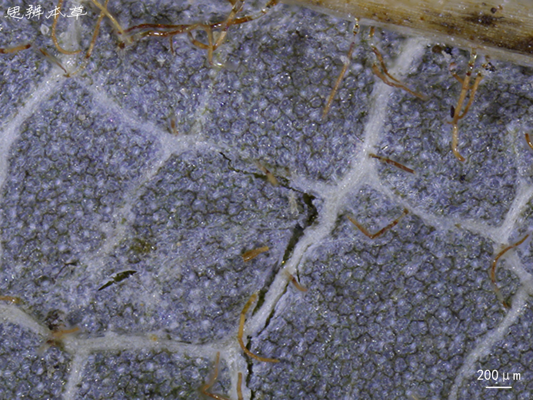叶下表面具乳突,伏毛,镶嵌或倾斜相接,长度多长于其余细胞综合的3倍左右。仅基部细胞中含棕黄色内含物。
