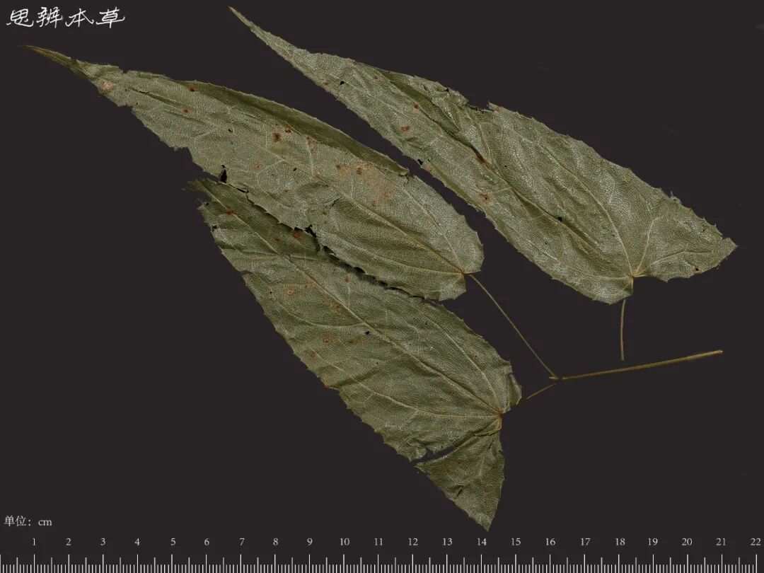 侧生小叶基部的裂片偏斜,内边裂片小,圆形,外边裂片大,三角形,渐尖。