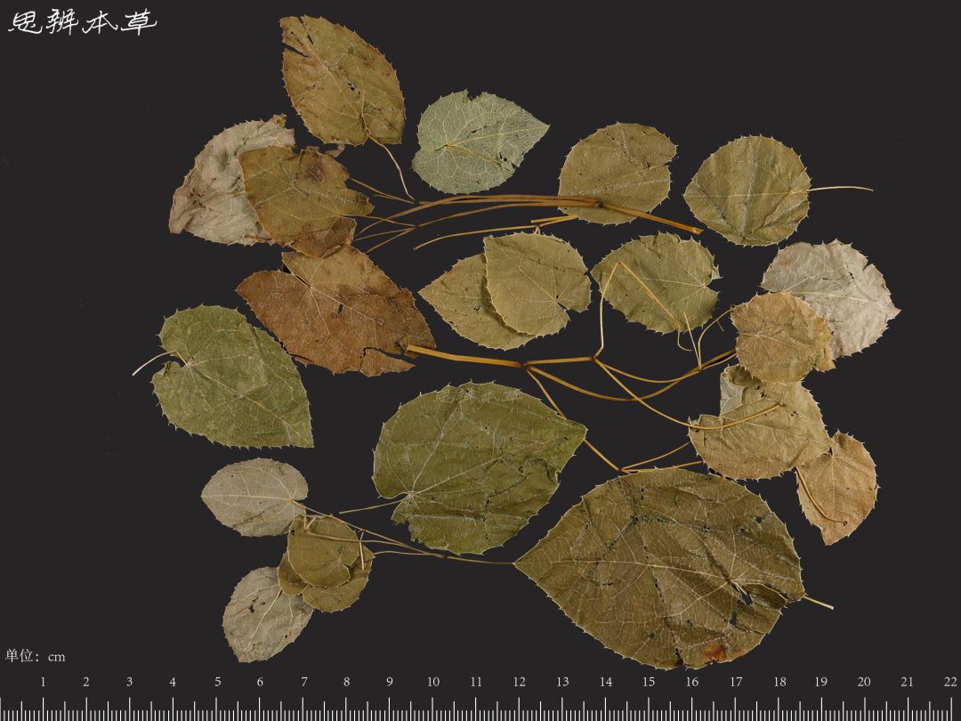 小叶片卵圆形,叶片上表面黄绿色,下表面灰绿色。叶端微尖或钝圆。叶纸质。