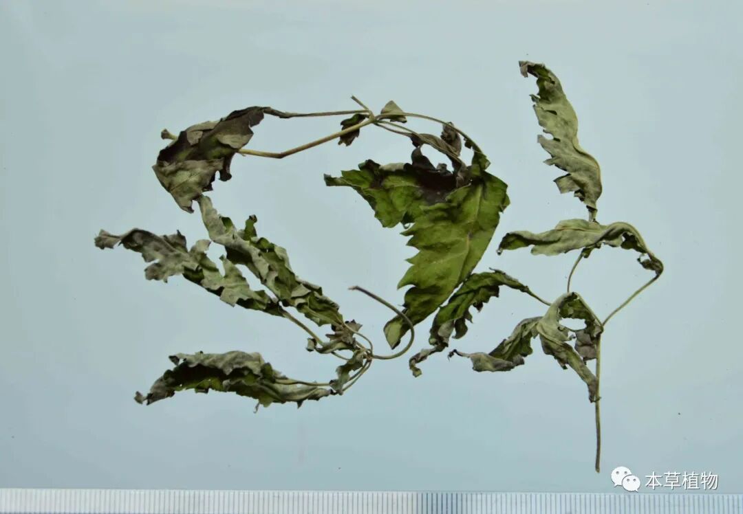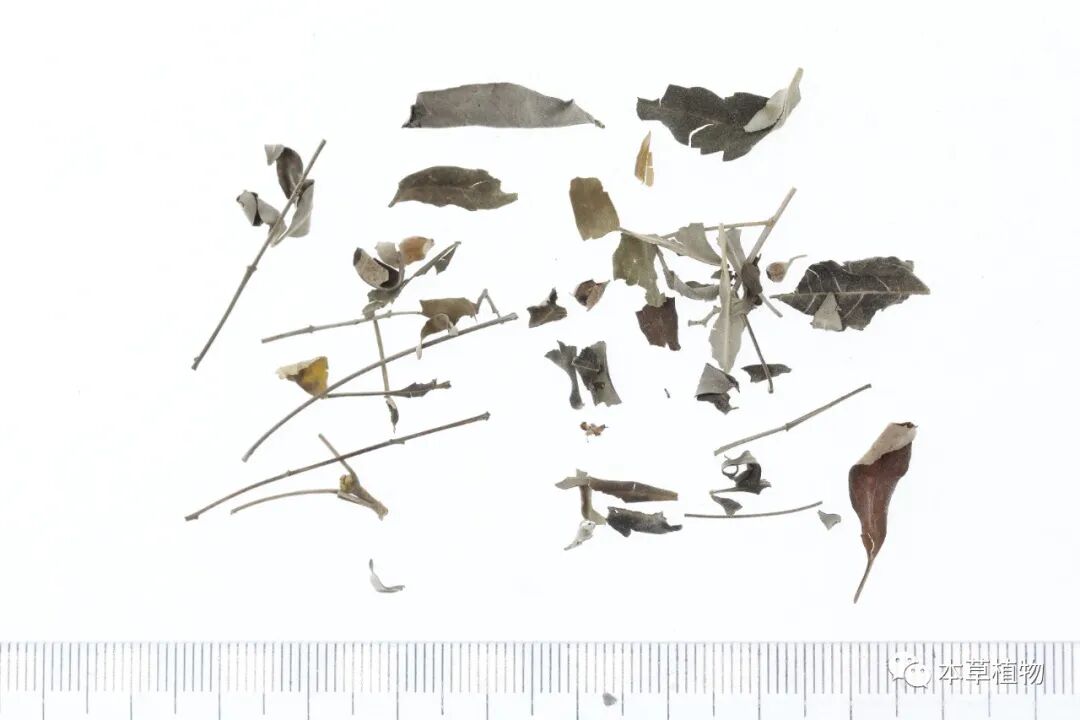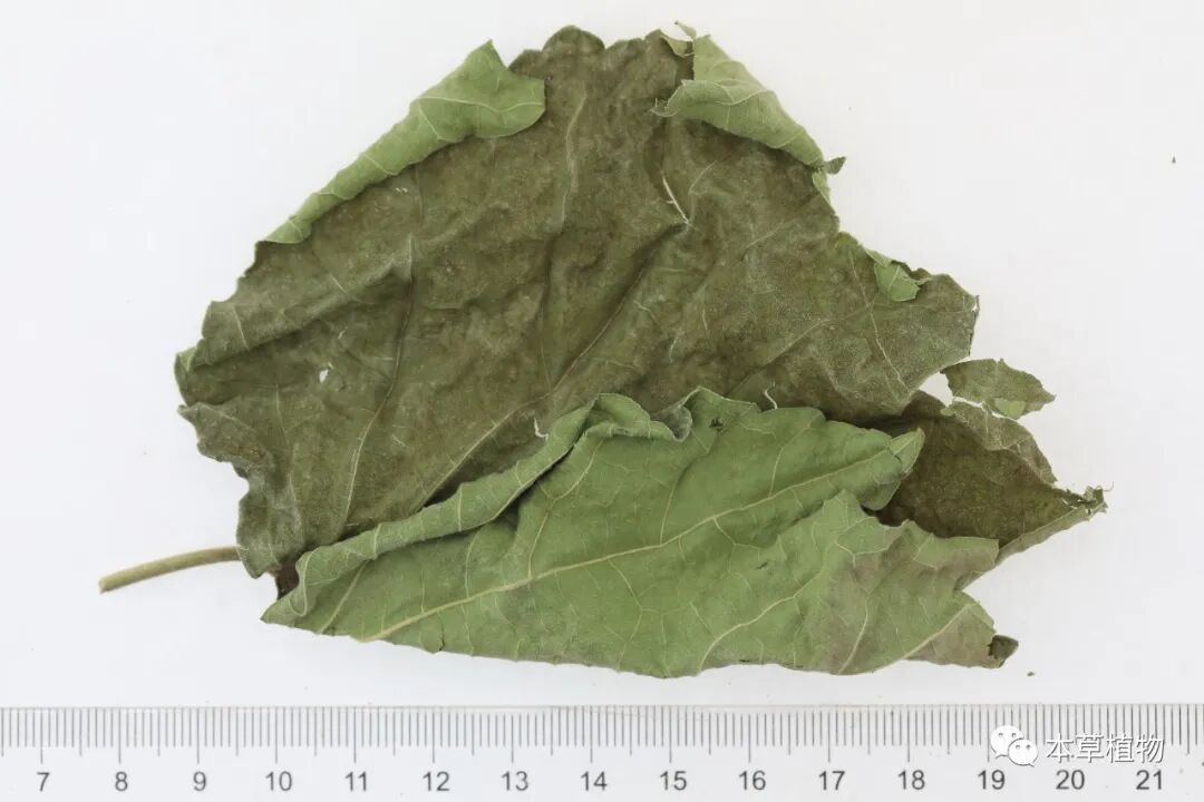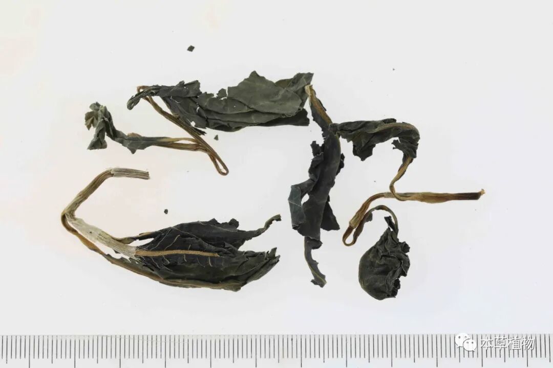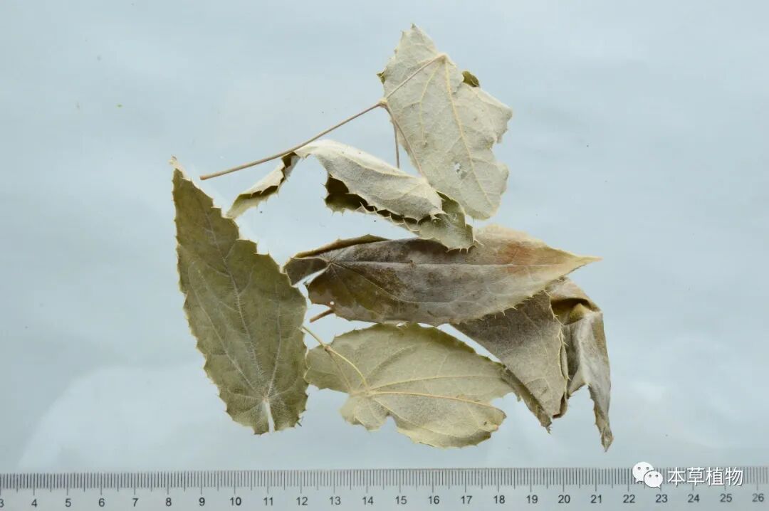 19、白麻:本品来源于夹竹桃科植物白麻Apocynum pictumSchrenk的干燥叶。夏季采收,除去杂质,干燥。