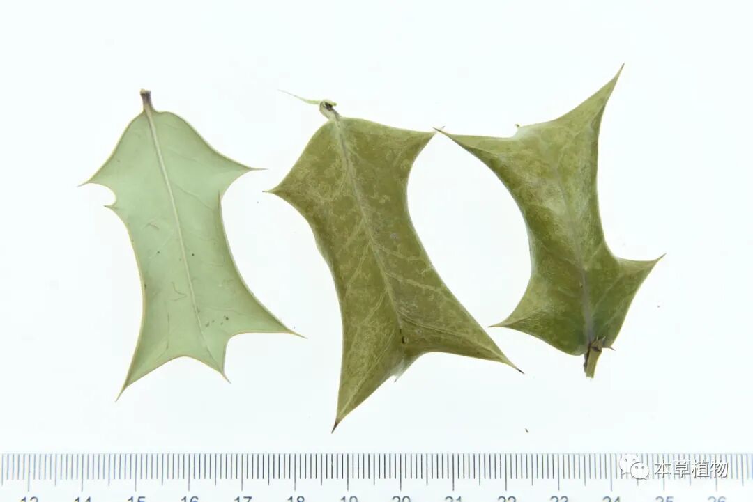 17、枸骨叶:本品为冬青科植物枸骨Ilex cornutaLindl. et Paxt.的干燥叶。秋季采收,除去杂质,晒干。