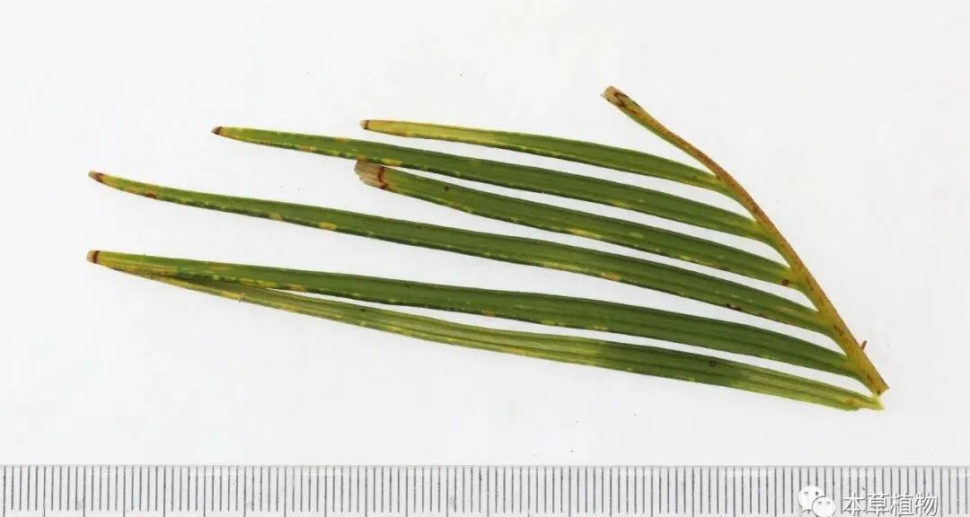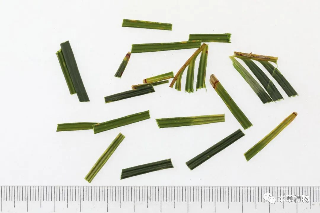 47、松叶:本品为松科松属植物马尾松Pinus massonianaLamb.的鲜叶或干燥叶。全年 可采,除去杂质,鲜用;或除去杂质,干燥。前者习称鲜松叶,后者习称干 松叶。