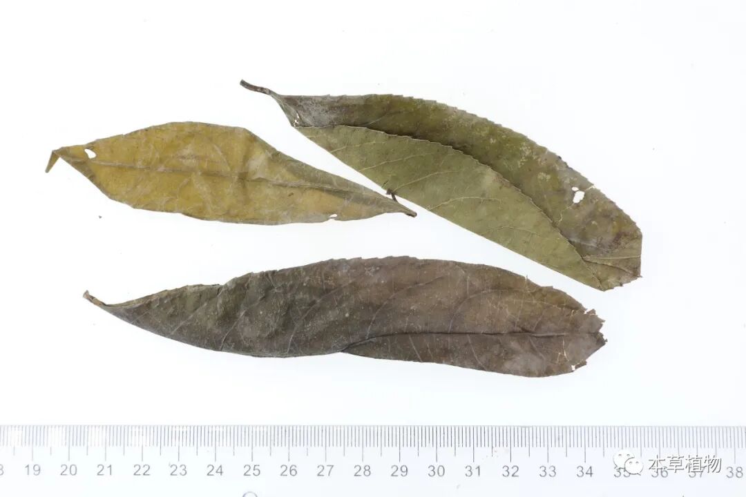38、山香圆叶:本品为省沽油科植物山香圆Turpinia argutaSeem.的 干燥叶。夏、秋二季叶茂盛时采收,除去杂质,晒干。