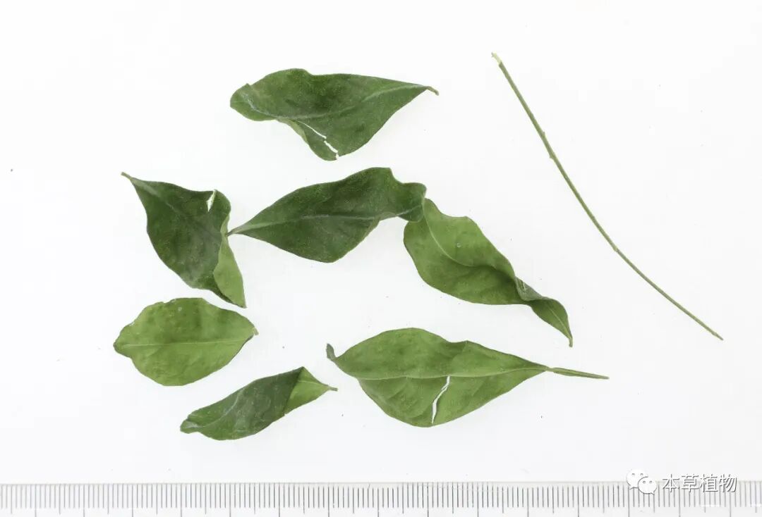 8、九里香:本品为芸香科植物九里香Murraya exoticaL. 和千里香Murraya paniculata(L.)Jack的干燥叶和带叶嫩枝。全年均可采收,除去老枝,阴干。