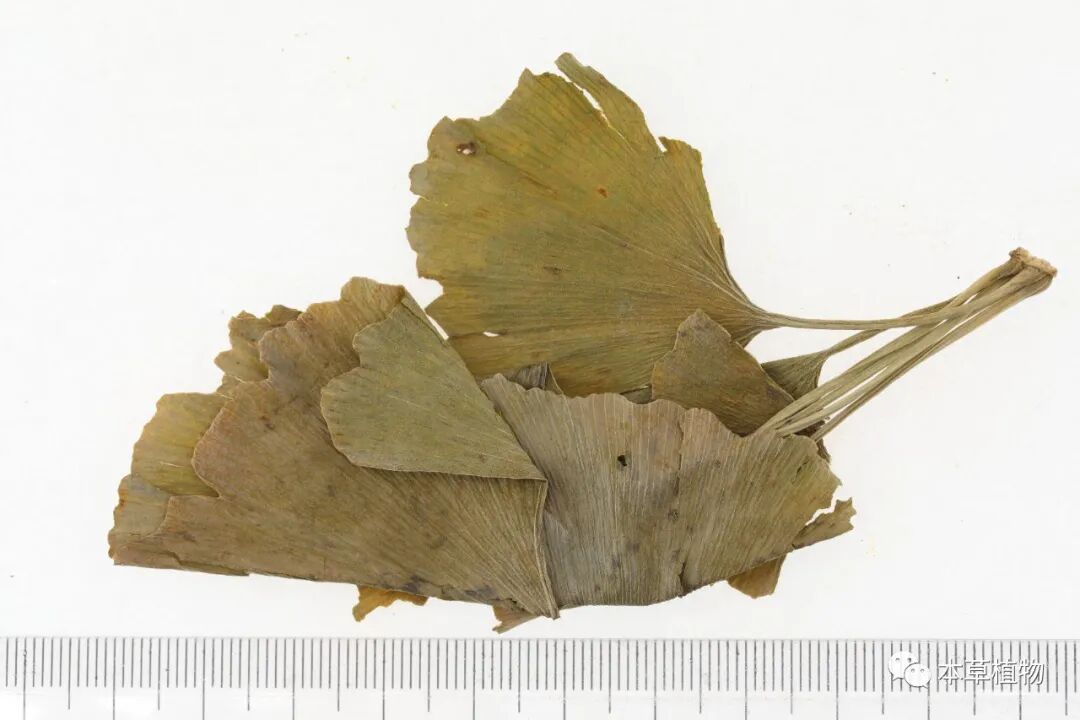 9、银杏叶:本品为银杏科植物银杏Ginkgo bilobaL. 的干燥叶。秋季叶尚绿时采收,及时干燥。