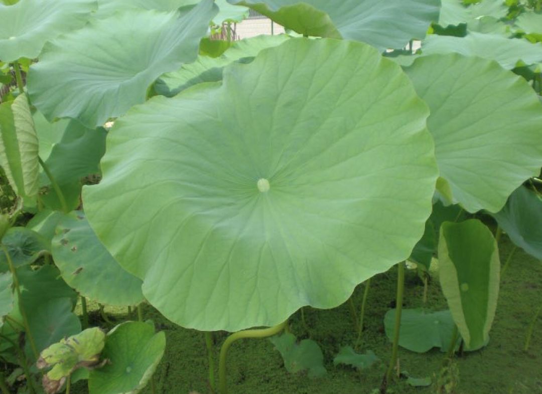 睡莲科植物莲的干燥叶。夏秋两季采收,主产于湖南、南方等地,以也大、整洁、色绿者为佳。