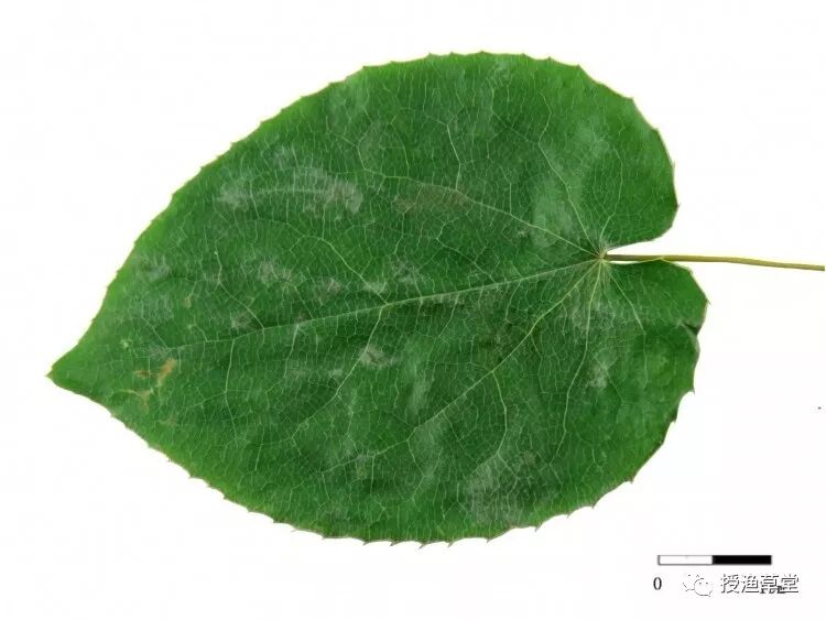 然后看看药材性状描述:【性状】淫羊藿三出复叶;小叶片卵圆形,长3~8cm,宽2~6cm;先端微尖,顶生小叶基部心形,两侧小叶较小,偏心形,外侧较大,呈耳状,边缘具黄色刺毛状细锯齿;上表面黄绿色,下表面灰绿色,主脉7~9条,基部有稀疏细长毛,细脉两面突起,网脉明显;小叶柄长1~5cm。叶片近革质。气微,味微苦。看好了,药典大部分都在描述叶片的特征,小叶柄只描述了长度。既然药用部位说的是叶,那就必须也得描述总叶柄特征,不然,药典就自相矛盾,性状这里缺项了。