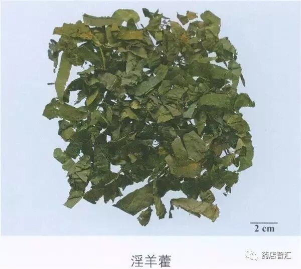 本品为小檗科植物淫羊藿、箭叶淫羊藿、柔毛淫羊藿或朝鲜淫羊藿的干燥叶。