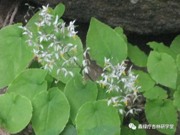 ②心叶淫羊藿(又名:小叶淫羊藿)叶片为圆心形,先端微尖。其他与淫羊藿同。