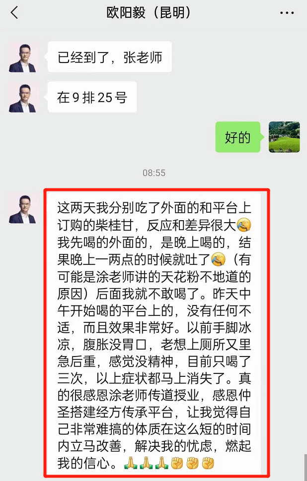 仲圣师友云南欧阳毅老师反馈:仲圣平台中药饮片,道地药材,值得信任!