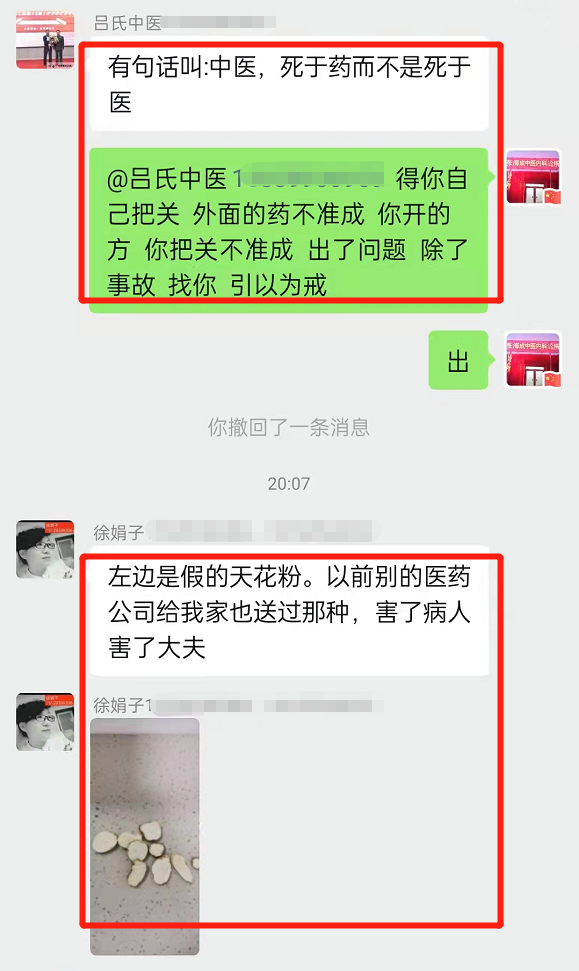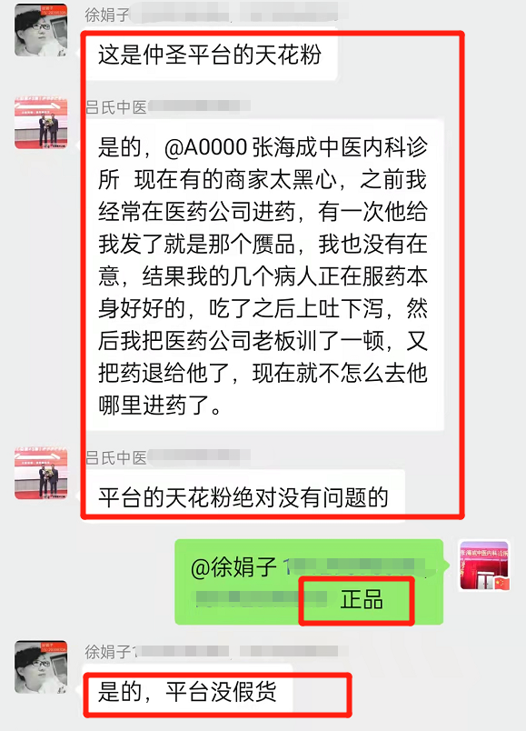 仲圣师友反馈:假天花粉害了病人害了大夫!仲圣平台没假货!
