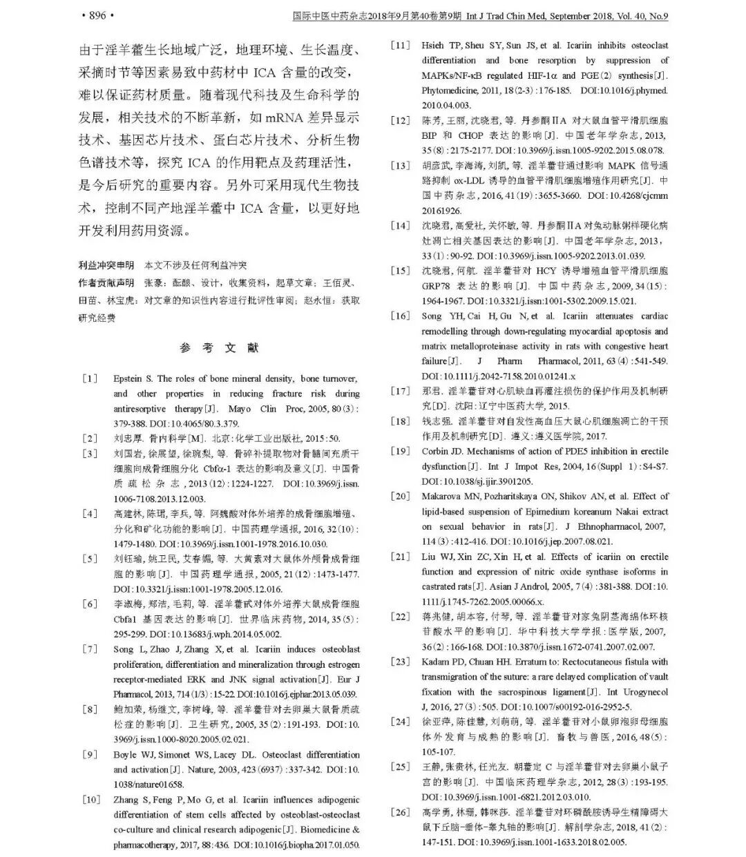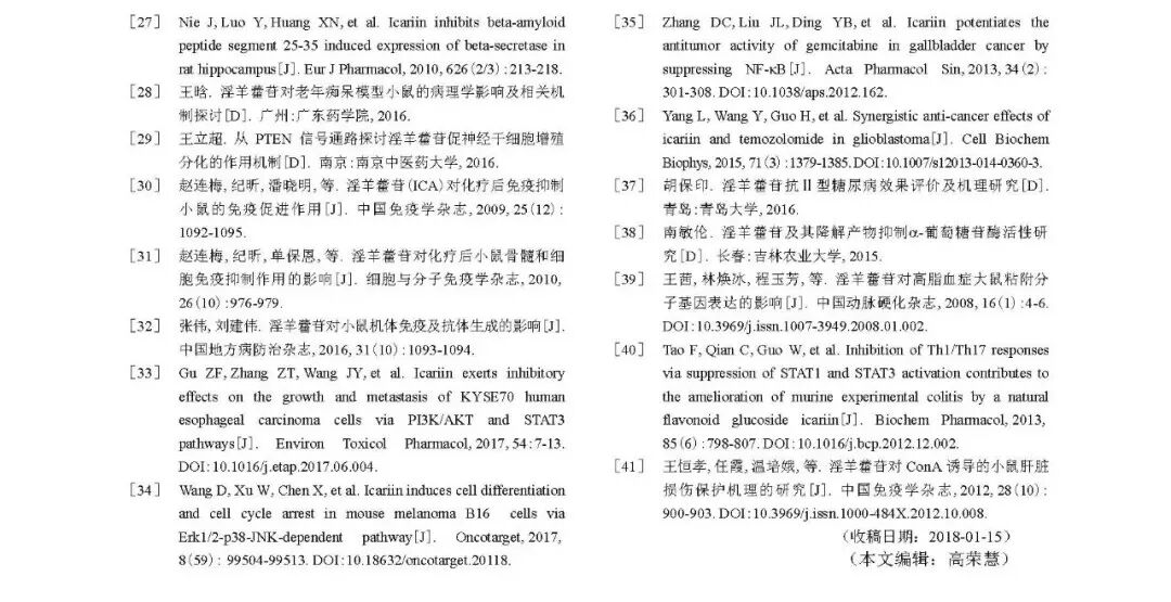张豪,王佰灵,田苗,等. 淫羊藿苷药理作用研究进展[J]. 国际中医中药杂志,2018,40(9):893-896. DOI: 10.3760/cma.j.issn.1673-4246.2018.09.028.