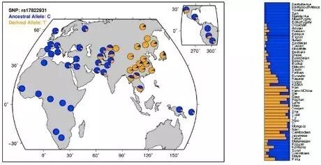 2、什么样的人会有狐臭?那么,问题来了:人人都有大汗腺,人人身上都有细菌,为什么只有少数人有狐臭?按理说,每个人都有大汗腺,每个人身上都有细菌,那么,人人身上都应该有狐臭。几千年前的确如此。地球上的老祖先身上都有所谓的狐臭,你甚至可以想象一下他们在一起的壮观场面,气味很可能几里之外都能闻得到。不过,到了大概2000代以前,我们祖辈走出热带非洲,进入亚洲温带以后,第16号染色体中部的ABCC11基因上第538位碱基发生基因突变,导致大汗腺减少分泌。所以,我们开始没狐臭了。ABCC11基因突变主要分布在东亚,因为出汗变少,更加适应温带的寒冷气侯,有遗传优势,所以经过4万年的演化,去狐臭的突变基因在东亚反而成了多数,在中国人当中占了95%左右,在华北中原地区的人口中占了99%以上。因此在中国,变种人才是多数,狐臭反而成了极少数。中国人逃脱了终日生活在狐臭当中的命运。其他地区的人口就没有中国人这么幸运了。在东亚,韩国人跟中国人差不多,99%没狐臭。但日本人当中只有84%没有狐臭,16%的人有狐臭啊!6个人里面就有一个,你想想是什么情景。这还不是最惨的,不在东亚,那就更惨!大洋洲土著只有30%没有狐臭,白人里面只有10%没有狐臭!黑人中只有0.5%没有狐臭!也就是说,除了东亚人以外,歪果仁几乎人人都有狐臭!还有个很有趣的事情,狐臭还可以用来跟踪人种迁徙。北美土著印第安人也是大多没有狐臭,说明他们是从亚洲偷渡"过来的。日本人有狐臭的人集中在原住民阿伊努人中,而不是占主体的大和民族,说明二者的不同起源。看看下面的狐臭基因分布图,黄色的是没狐臭的突变型,蓝色是有狐臭的野生型。除了东亚这片黄色的土地,其他全世界都是一片狐臭的汪洋大海啊!世界上有狐臭的人远比没有狐臭的人多!所以说有狐臭的同学们你们还自卑个啥?四海之内皆兄弟也这句话才是真正送给你们的!