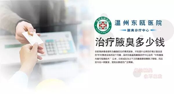 下面我们看看温州东瓯医院(腋臭专科)专家的分析:对于狐臭的治疗,温州东瓯医院采用中科腋臭可视消融术,它能准确分辨出异常大汗腺,精确定位,为手术提供安全保障。此疗法避免了传统手术痛苦大、伤害大等缺点,只需在腋窝通过绿豆粒大小的孔,将皮下异常大汗腺清除,手术时间短、不住院、恢复快,且保留了腋下皮肤完整性,不影响皮肤正常功能,术后愈合美观,无后遗症,一次性根治不复发。