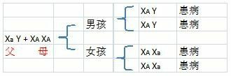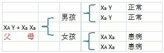 女性性染色体为XX,女性XAXA、XAXa患病, XaXa正常;