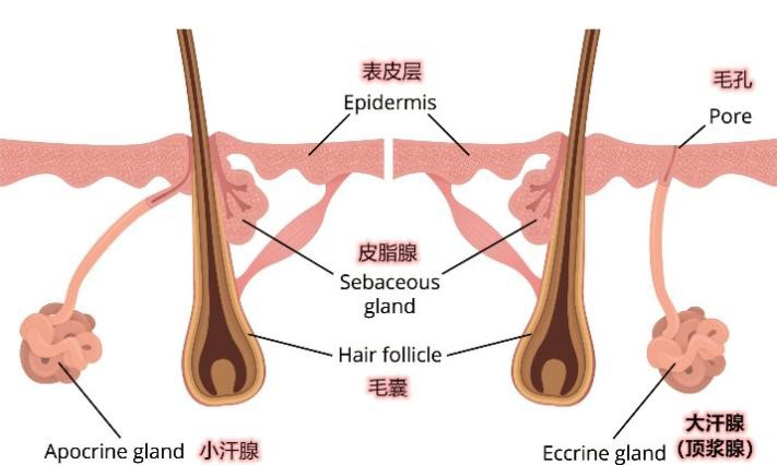 狐臭是大汗腺分泌的脂肪酸、蛋白质等物质,经细菌分解而产生不饱和脂肪酸散发出来的气味。