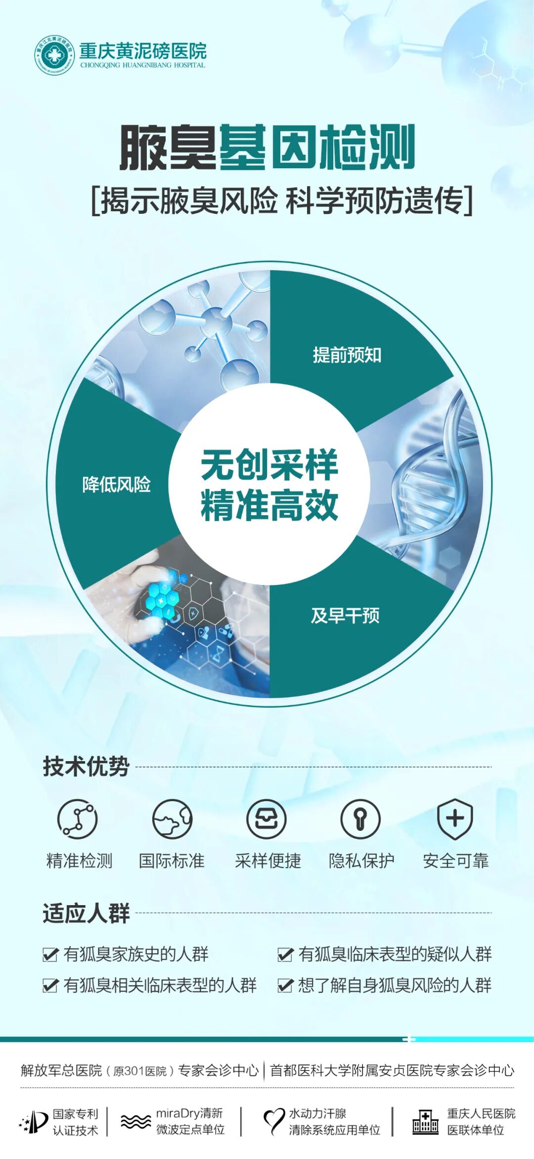 研究表明,腋臭具有遗传性,🉑通过基因检测▶判断患病风险及遗传性,提前进行干预✅想要有效解决腋臭问题还是要选对方法,建议您根据检测结果选择合适的治疗方式。基因检测是通过无创的方式采样检测的,15个工作日就有结果了,