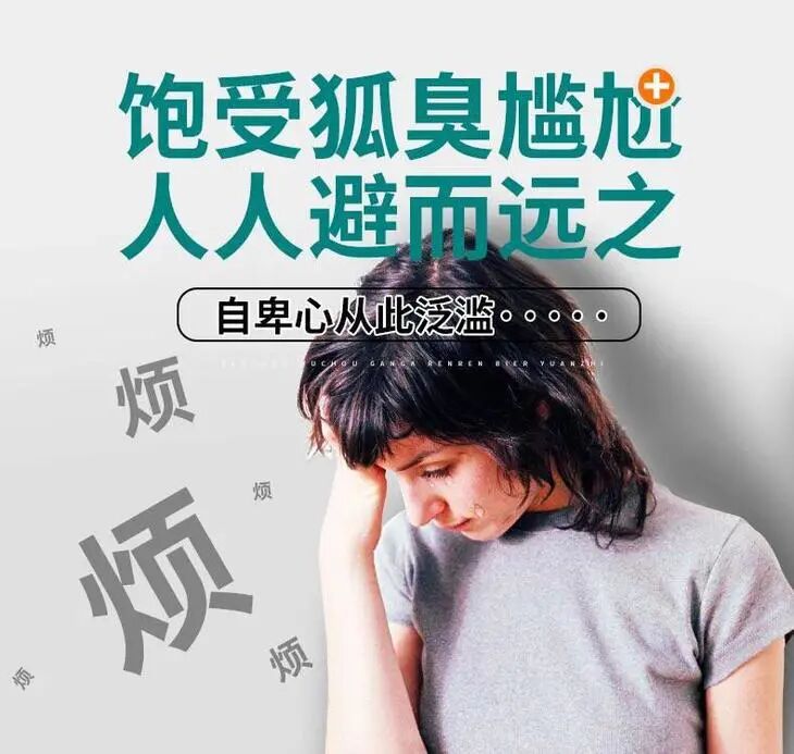 腋臭:也称狐臭,是臭汗症的一种,青春期后由于腋窝大汗腺分泌的汗液与细菌发生作用,产生不饱和脂肪酸,从而产生特殊臭味。无论是进入公共场合,集体宿舍,参加集体活动都会觉得非常尴尬。久而久之产生程度不等的心理障碍。