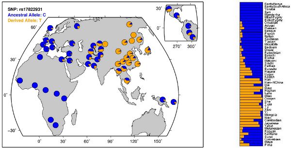 全世界狐臭分布图(蓝色:有狐臭,黄色:没狐臭)