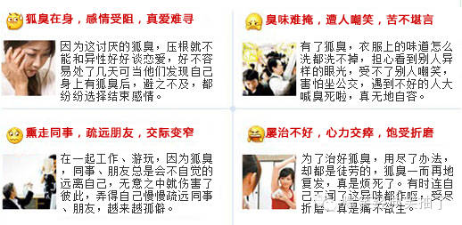 1.为什么用药治疗狐臭都这么长时间了,狐臭总是反反复复的,消失一两个月后,狐臭又卷土重来,而且还发现自己的皮肤比以前粗糙很多了。该怎么办呢?怎么才能治疗狐臭呢?