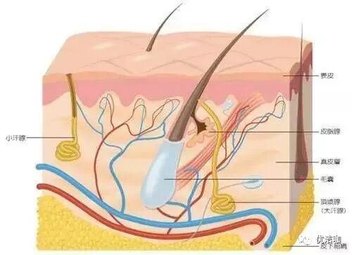 2.我们的体内有大汗腺和小汗腺两种汗腺:小汗腺遍布全身各处,而大汗腺只分布在腋窝、脚底、外耳道和会阴等部位