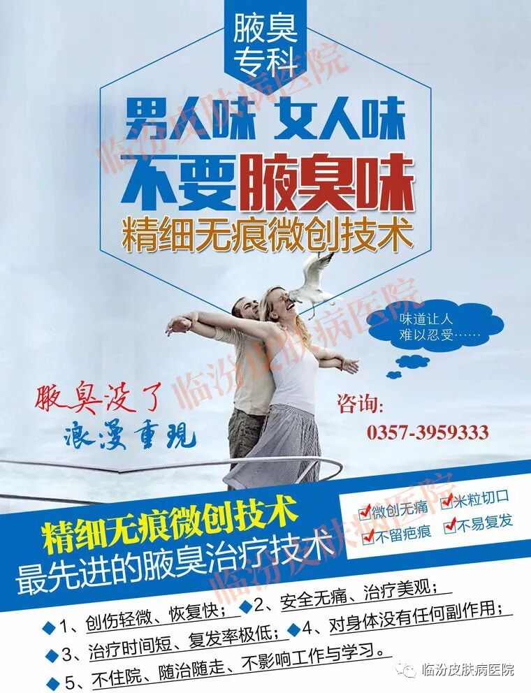 临汾皮肤病医院医生推荐国际狐臭诊疗专利技术——NM汗腺定位消融术,短时间从根本上切断异味产生的根源,达到永久除臭、不留疤痕的完美效果。