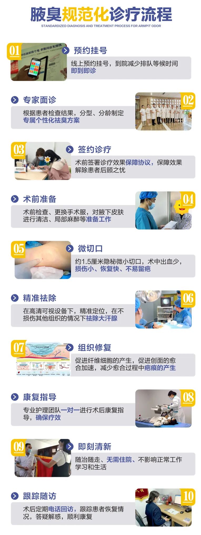 包括小切口腋臭手术、微创腋臭手术(如改良双切口皮瓣手术)、抽吸术或刮除法等。