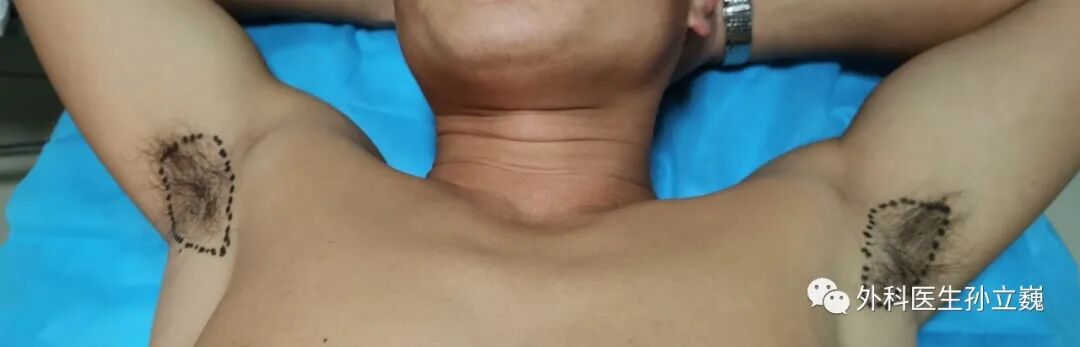这位患者汗腺的范围也不小,也做了小切口手术。这个是有术后的图片的,大家可以对比着看看。
