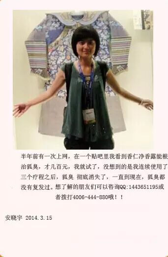 什么药治狐臭??狐臭总是反反复复治不好,这是很多狐臭患者头疼的事情,真的是很无奈的。自己试过很多 的治疗,钱也花了,就是不见好,心里别提多郁闷了,我太明白这种感受了,因为我就是这么一个每次都抱着希望去治疗自己的狐臭,最后都是无尽的失望,真的是太失落了,那种一次一次的从天堂掉到地狱的感受我一辈子都不会忘得! 带着这种不甘心,我没有气馁,虽然试过很多次,都没有成功,但是追求美丽的心告诉我不能放弃。虽然以前的失败让我满身伤痕,让我现在想起来就会觉得心里隐隐作痛!刚知道我有狐臭的时候,我没有太在意,因为那时候也不是严重,再加上那是在冬天,没有人会闻到,可是一到夏天,我算是真的体会到它的危害了,也是那时候踏上了治疗狐臭的道路 ,这条路远没有我想的那么好走,真的是布满了荆棘!?把我弄得是片体鳞伤,每次都是抱着希望去,伴着失望归!又会到了原点! 两年下来,我真的觉得好辛苦,我到底该何去何从呢,真的就这样放弃了吗,真的就让狐臭伴我一辈子吗,那我的人生会是什么样的呢,就是一个人,连个爱我的人都找不到吗?这太可怕了,绝对不行,我觉得不管付出什么我都不会放弃的,可能是老天看到了我的辛苦,也看到了我的决定,可怜我吧,在一个上网的时候,我看到一个贴吧,楼主提到了这样的问题:腋臭总是反反复复治不好,有狐臭人们该怎么办呢??这不就是我一直再烦恼的问题吗,我一定会往下看的,我看到很多人都再说香仁净香露!起初没有很相信,然后我就抱着好奇的心情到他们的官网看了看,看到很多与我有相似经历的人们的康复案例,我也咨询了专家,我决定试试,这次是我做的最正确的一次决定,我好了,我真的好了,这对于我来说绝对是老天的恩赐!