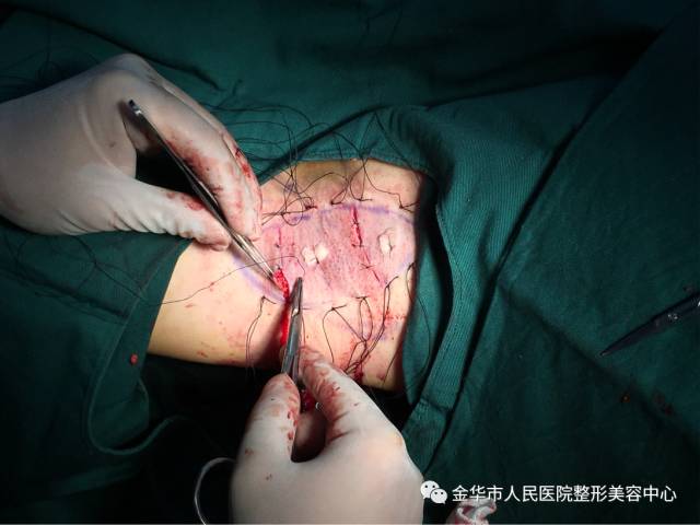 四、完整清除附着毛囊根部的大汗腺组织,保留皮肤