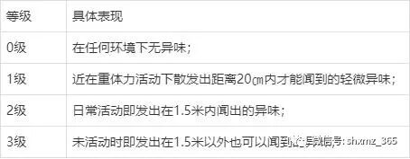 三、腋臭程度自测表