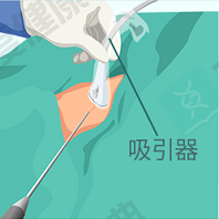 医生在超声辅助下利用抽吸装置将皮下脂肪和汗腺一同去除。