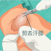 医生通过将腋部有毛区皮肤切除或Z字形切开、原位皮瓣回植等方法破坏汗腺及毛根。