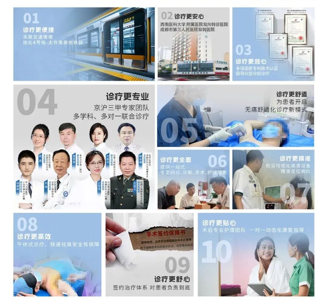 成都军大医院腋臭科致力于腋臭病种的专业、专病、专治。遵循分龄分型立体化现代诊疗模式,开设男性腋臭、女性腋臭、青春期腋臭等特色门诊,为腋臭患者提供全面、专业、可靠的诊疗服务。成都军大医院不断拓展国内优质医疗资源,不定期邀请上海、北京等三甲名医来院会诊,通过多学科联合会诊形式,打破传统单一诊疗,让患者看病少走弯路,享受一站式服务。