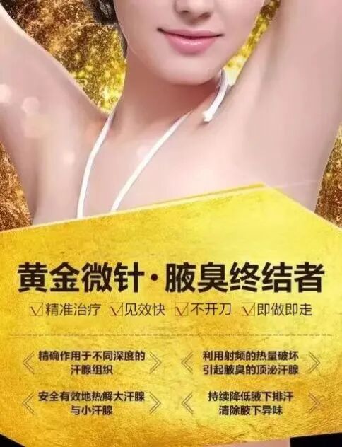 对于确诊患有腋臭的患者,语卿医疗最新推出的黄金微针除腋臭项目,为您带来了一种既科学又高效的解决方案。该项目通过黄金包裹的微针插入腋下,由针尖释放射频,将能量集中作用于皮下汗腺组织,选择性地破坏毛囊皮脂腺、大汗腺,使大汗腺凝固变性坏死,同时抑制炎症反应,激活自身抗炎修复系统,从而达到治疗腋臭的效果,让您摆脱尴尬困扰。
