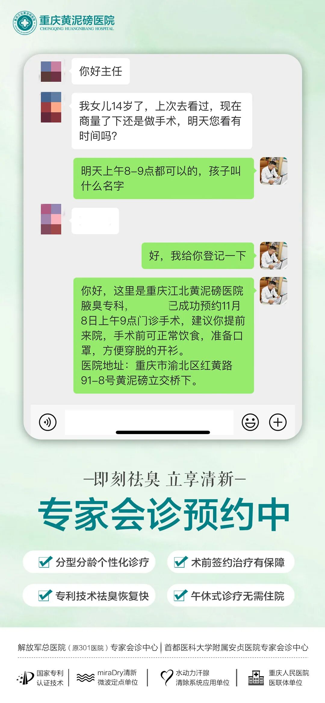 我院的手术签约可以最大程度保障患者的治疗权益,帮助患者在术后更好地恢复腋下清新。周末来院就诊人多,建议您提前预约。