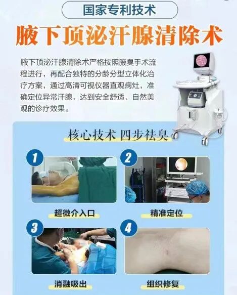 该技术能够在高清可视设备的辅助下,精准定位并清除腋下顶泌汗腺,清除率高达95%以上。