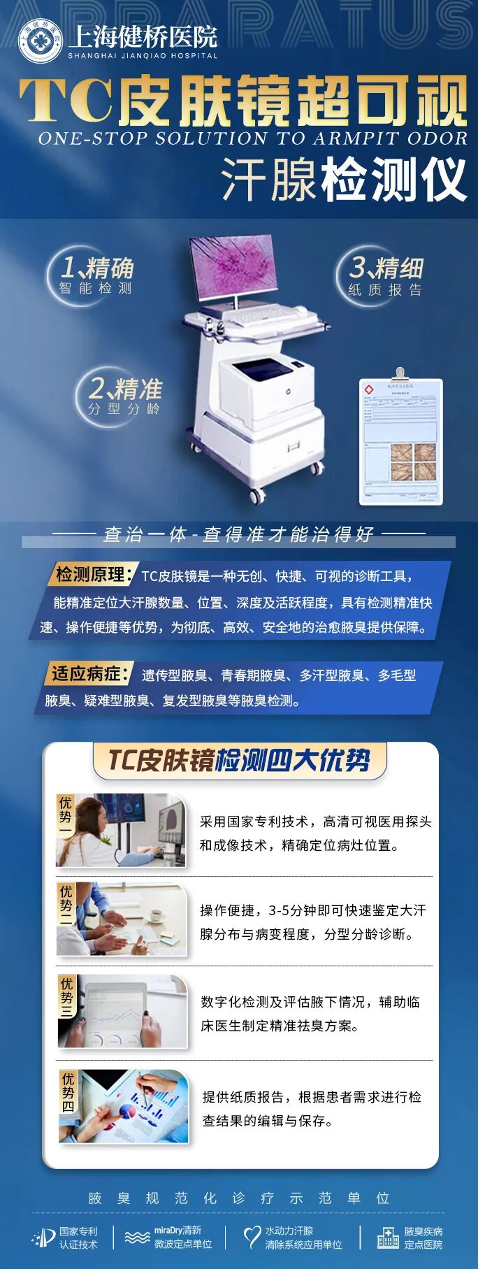 总之,TC皮肤镜超可视汗腺检测是一种先进、无创、精准的汗腺检测技术,对于狐臭等汗腺异常疾病的诊断和治疗具有重要意义。