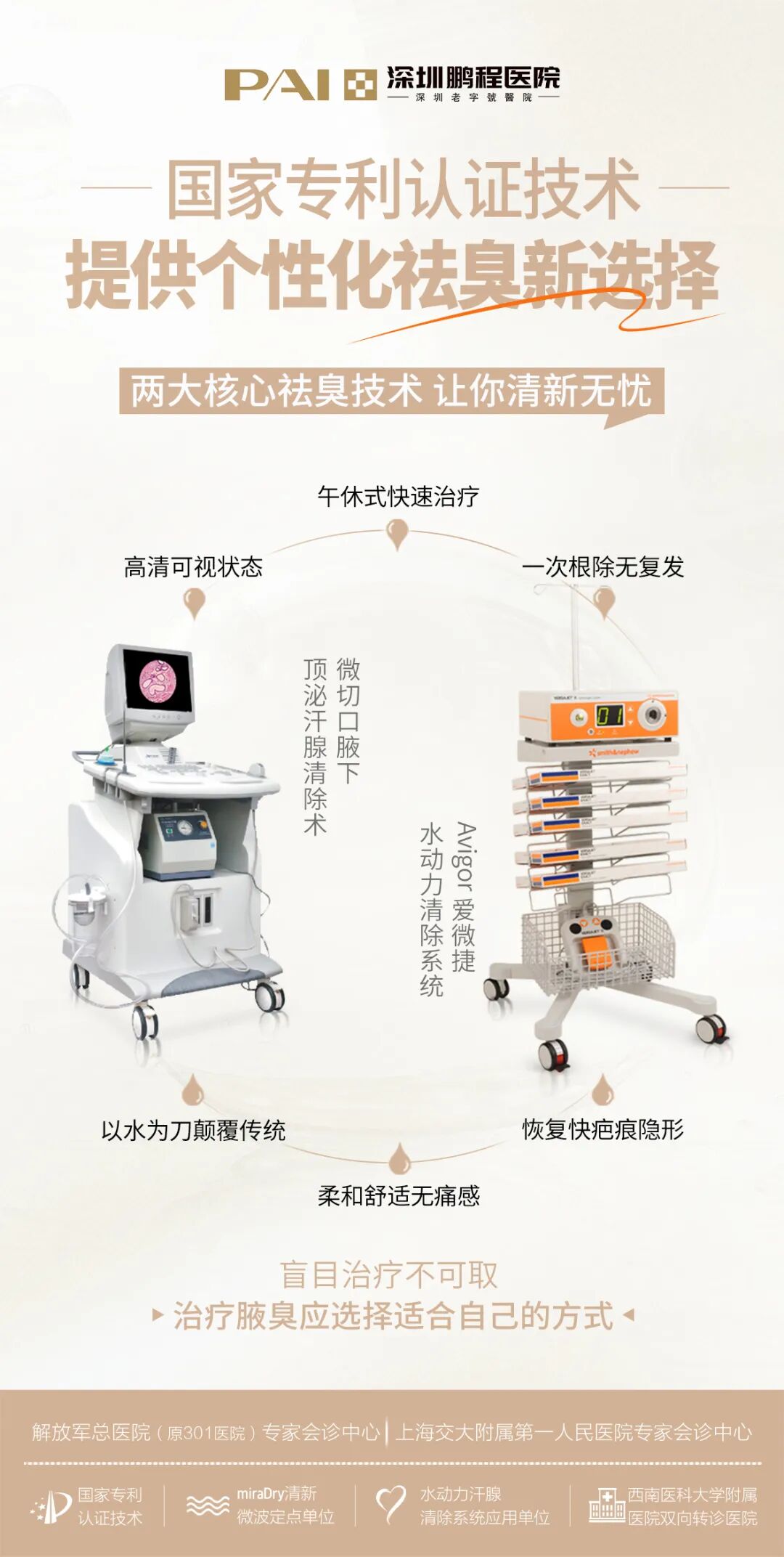 水动力汗腺清除系统:是一种用于解决腋臭(狐臭)问题的微创手术系统,它利用水动力原理结合负压技术,通过专有的细胞组织分离技术,对大汗腺进行精准定位和清除。