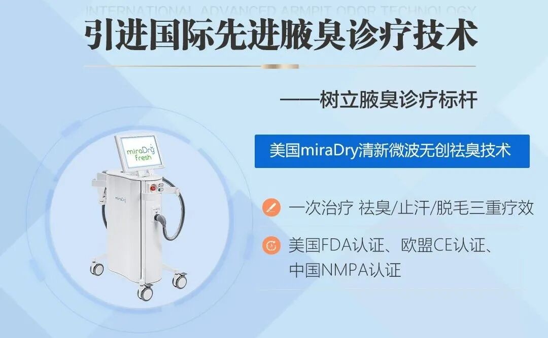 miraDry清新微波技术是一种非侵入性的治疗方案,主要用于解决腋下多汗及腋臭问题。该技术由美国Miramar labs实验中心研发,并已通过美国FDA、欧盟CE和中国CFDA(现为中国国家药品监督管理局)等多方认证。以下是对miraDry清新微波技术的详细介绍: