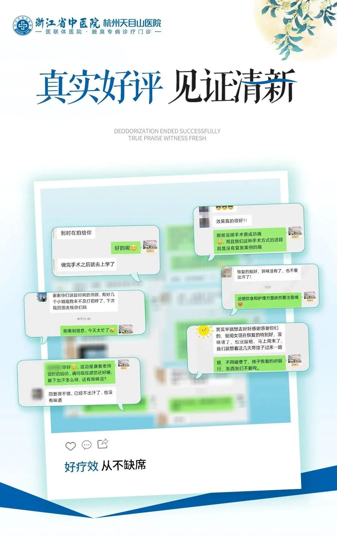 杭州天目山医院腋臭科作为华东地区重点腋臭治疗机构,始终秉持着为患者提供卓越、专业的医疗服务的初心,致力于为每一位患者带来希望与改变。