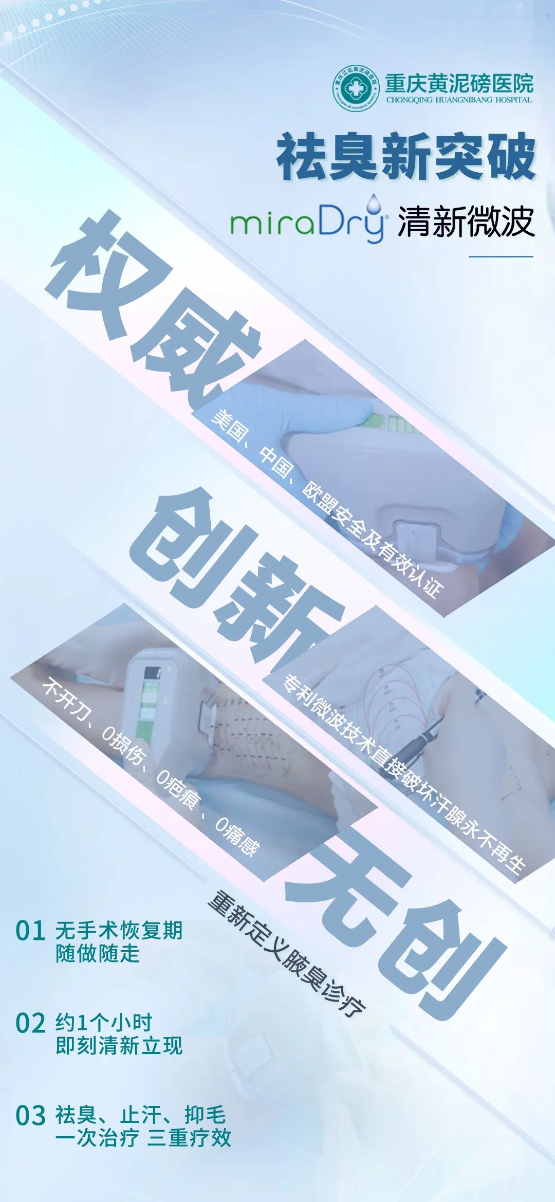 只有通过专业规范的诊疗回归清新生活,才能更好地减少腋臭带来的影响。miarDry清新微波不用开刀就可以完全祛臭,一个午觉的时间就可以解决异味困扰了。