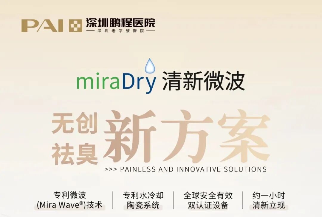 作为本院重点建设学科,深圳鹏程医院腋臭科综合运用美国无创miraDry清新微波(免开刀)、爱微捷水动力(水刀)汗腺清除系统、微切口顶泌汗腺清除术等前沿技术辅以心理疏导,由内而外地帮助腋臭人士摆脱腋臭困扰。同时不定期邀请北京、上海三甲腋臭专家来院会诊,让患者在家门口也能享受到高品质医疗服务。
