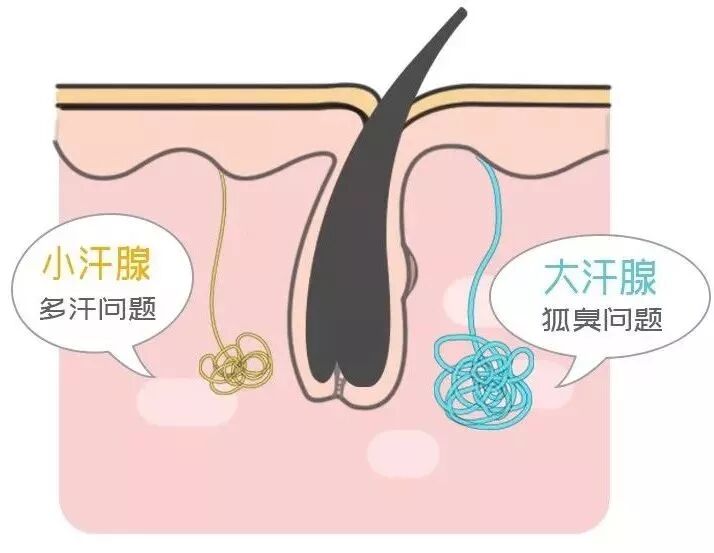 另一种叫做大汗腺,它只分布在腋下等部位,其分泌的汗液会比较浓稠,不仅有水分和盐分,还有很多皮脂、蛋白质等物质,这些分泌物经由腋下的细菌分解,就会形成味道浓重的气味。