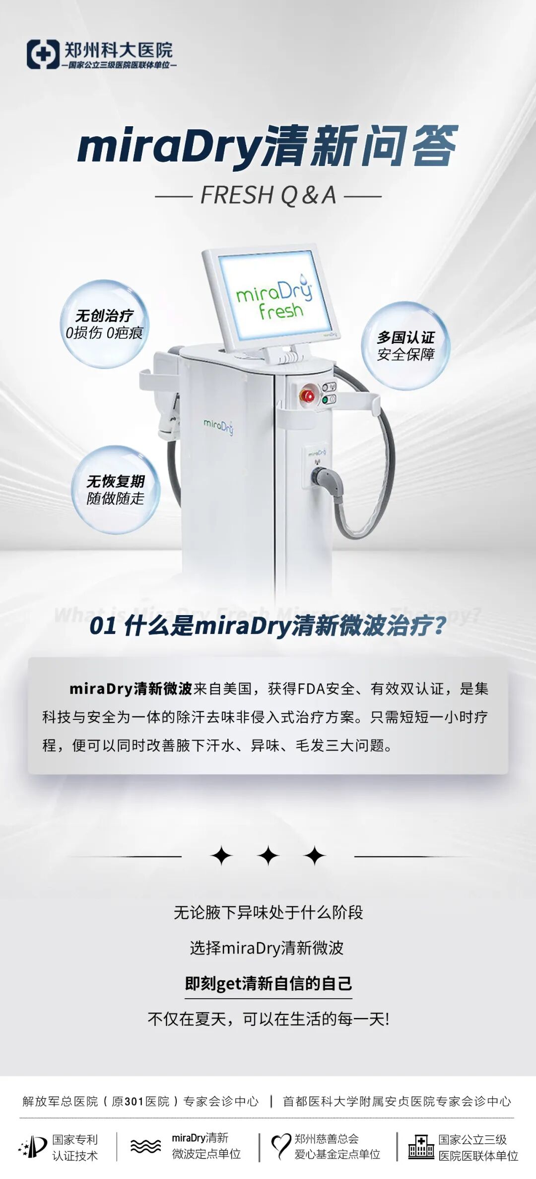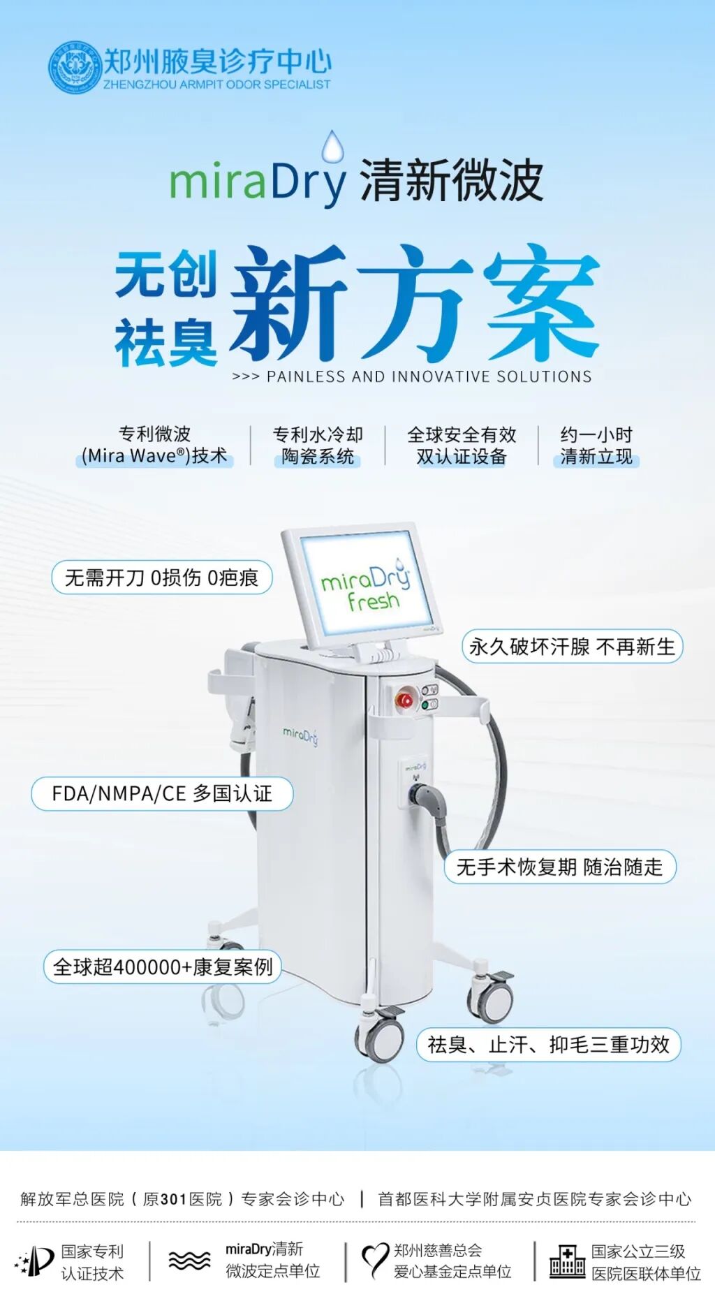 miraDry清新微波技术是一种高效、安全、非侵入性的治疗方案,为腋下多汗、异味及毛发过多的患者提供了理想的选择。