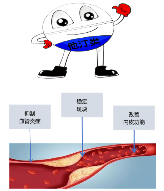 改善血管内皮功能,稳定和逆转动脉粥样斑块,抑制血管炎症。增加粥样硬块稳定性或使斑块缩小,减少缺血性脑卒中、心绞痛、心肌梗塞的发生。