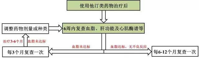 (2)使用他汀类药物治疗后,监测流程图如下: