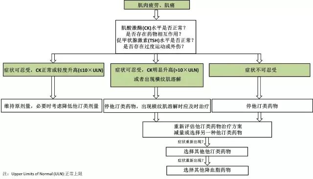 首先需审视是否与合并饮食、药物存在潜在的相互作用,如在服用他汀类药物的同时服用了红霉素、克拉霉素、三唑类抗真菌药、环孢霉素、他克莫司、地尔硫卓、维拉帕米、非诺贝特、大剂量西柚汁等,可增加他汀类药物发生不良反应的风险,停用合并药物后,不良反应可减轻或消失。