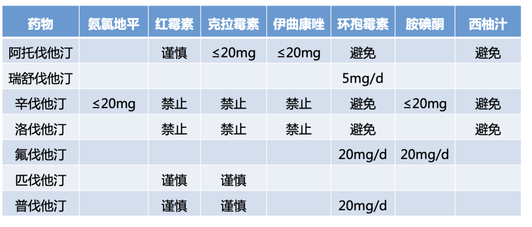 表5 他汀类药物与常用药物的相互作用