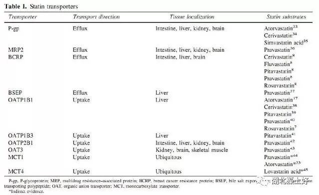 有机阴离子转运多肽(OATP) 广泛分布于胃肠道、 肝脏、 肾脏、 血脑屏障等处, 并介导跨细胞转运, 在药物吸收、 消除和组织分布中起重要作用。其编码基因统称为SLCO基因,具种族差异性,并与他汀转运密切相关。胆固醇合成酶系存在于胞质及光面内质网膜。0ATP1B1特异性存在于肝脏,介导内、外源性物质进入肝脏细胞具有重要作用,多数他汀为OATP1B1的底物。